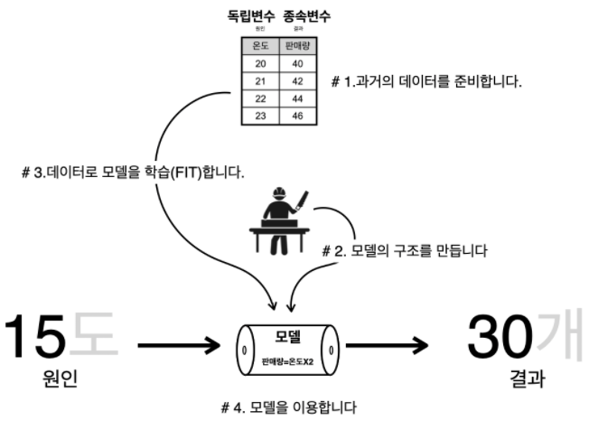 - 원인을 모델에 넣어서 결과를 얻는다.