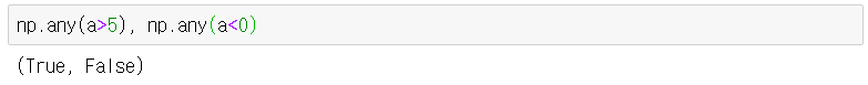 : array의 데이터 전부(and) 또는 일부(or)가 조건에 만족 여부 반환