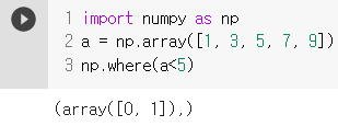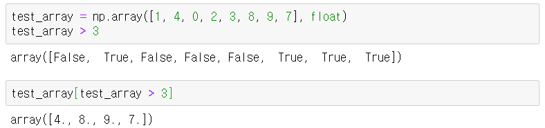 : numpy 배열은 특정 조건에 따른 값을 배열 형태로 추출 할 수 있다.