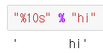 전체 길이가 10인 문자열 공간에서 대입되는 값을 오른쪽으로 정렬하고 그 앞의 나머지는 공백으로 남겨두라는 의미이다.