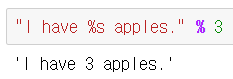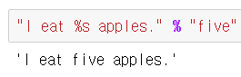 %s 포맷 코드는 어떤 형태의 값이든 문자열로 변환해 넣는다.