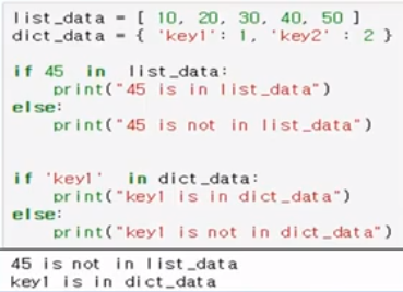 - if 조건 in list, dictionary...: