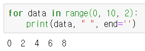 range(시작값, 마지막값, 증가값) 함수는 시작값 ~ 마지막값-1인데 증가값씩 값이 증가한다.