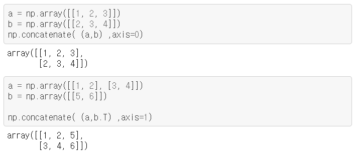 np.vstack() -> vertical로 합친다. == np.concatenate(, axis=0)