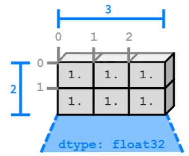 >>> np.ones( ( 2, 3 ), dtype = 'float32')