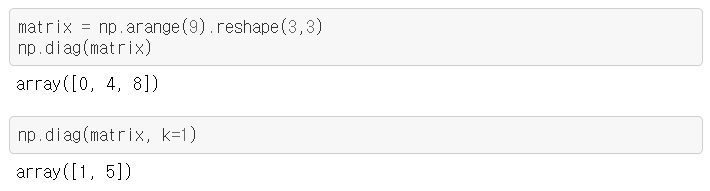 : 대각선이 1인 행렬, k값의 시작 index의 변경이 가능