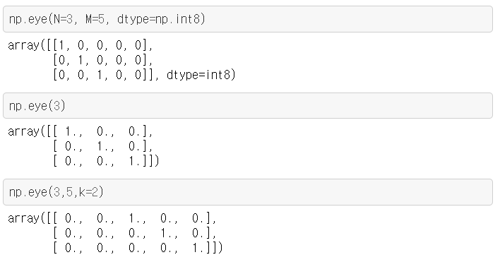 #np.zeors (3)은 np.zeros( ( 3, ) )과 같다.