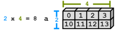 >>> a = np.array ( [ [ 0, 1, 2, 3 ], [ 10, 11, 12, 13 ] ] )
