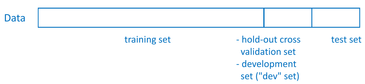 딥러닝 모델을 학습할 때 data를 train data, developement data, test data로 나눈다.
