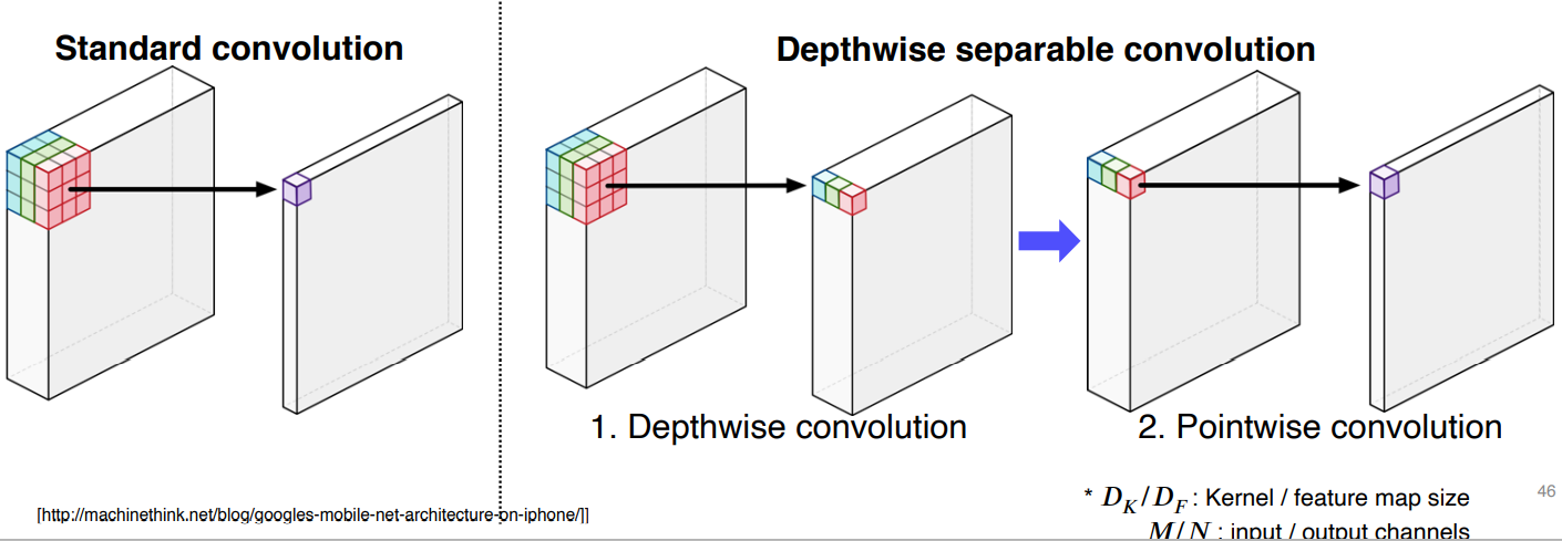 - 이렇게 두 개의 process로 나누면 convolution의 표현력도 어느 정도 유지가 되면서 계산량은 획기적으로 줄어든다