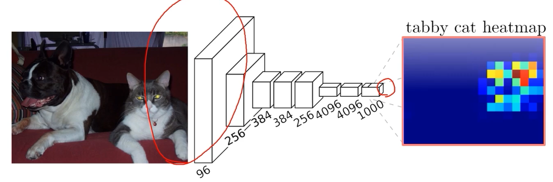 - 그래서 각 layer 별로 activation map에 해상도와 의미를 살펴보면 다음과 같은 경향성이 있다.