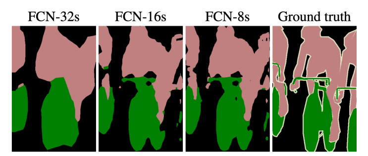 - FCN-8s : 좀 더 많이 다른 중간 단계의 activation map과 합친 결과