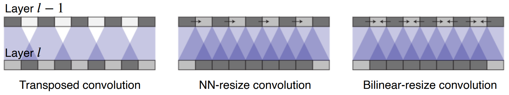 - Checkerboard artifacts: https://distill.pub/2016/deconv-checkerboard/