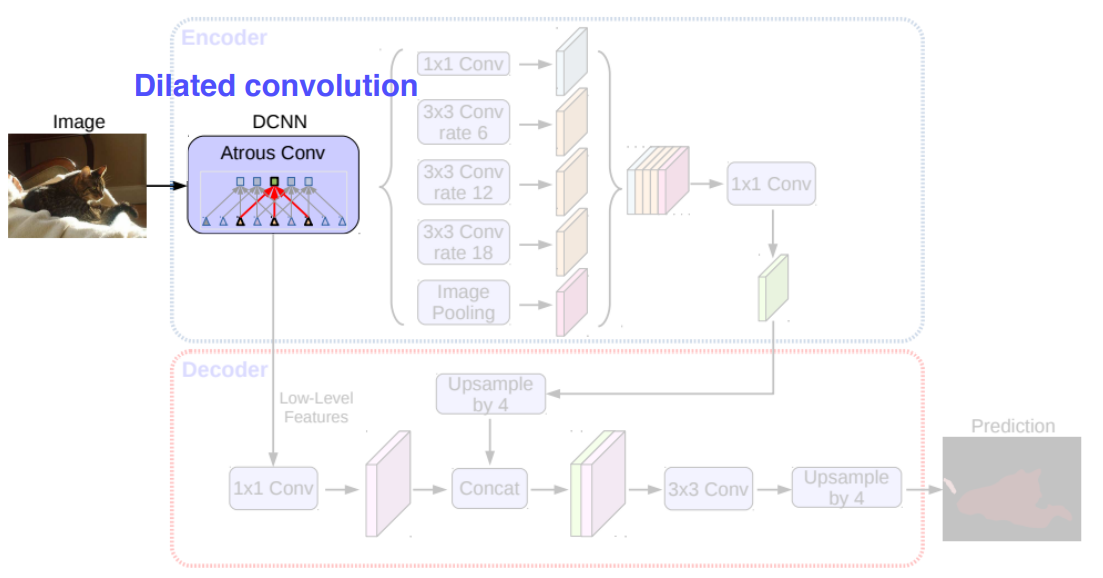 - dilated convolution(Atrous Convolution)이라 불리는 convolution operation의 사용
